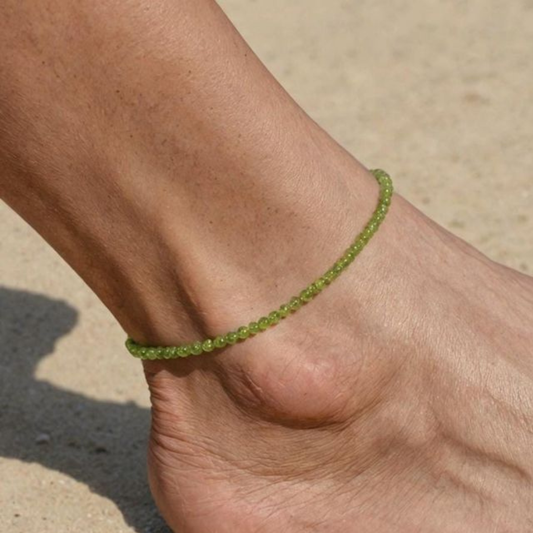 Celestial Green Peridot Anklet 3mm – For spiritual alignment & joyful flow