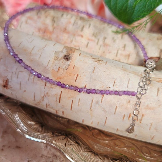 Divine Aura Amethyst Anklet 3mm – For intuition, balance & spiritual harmony