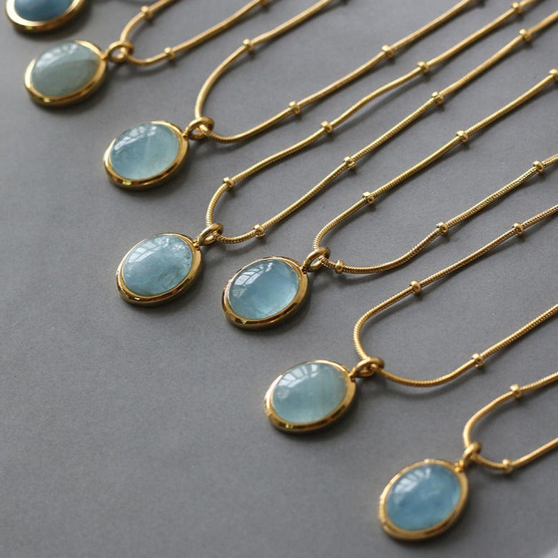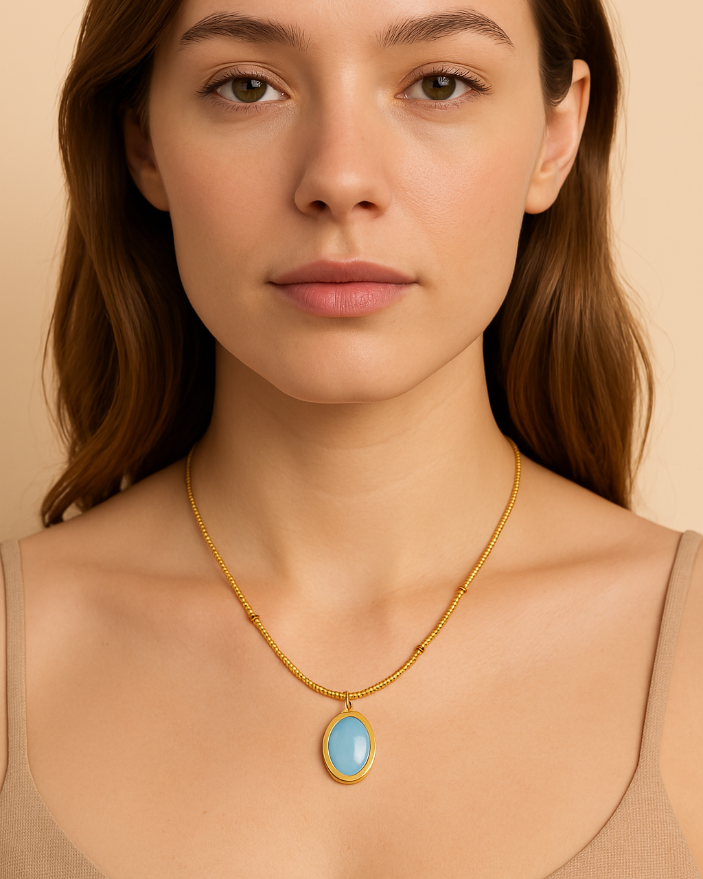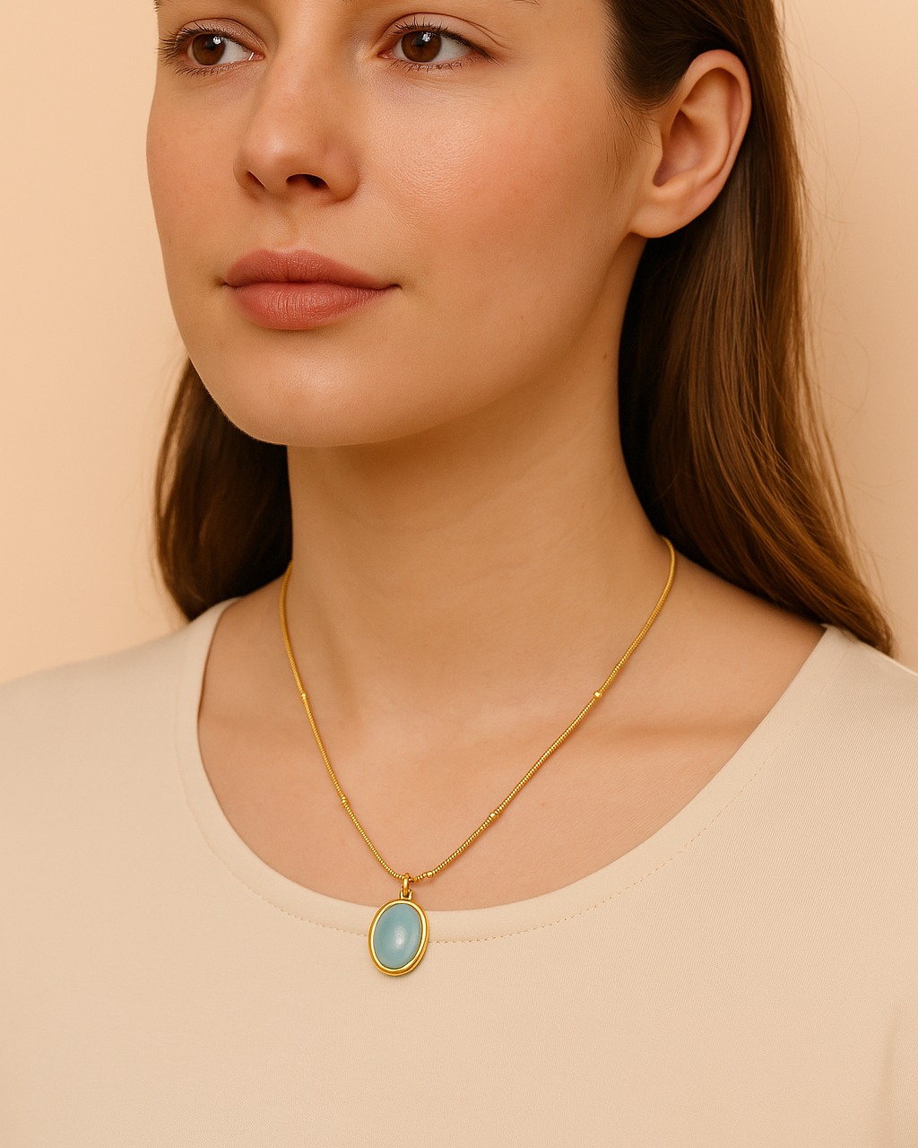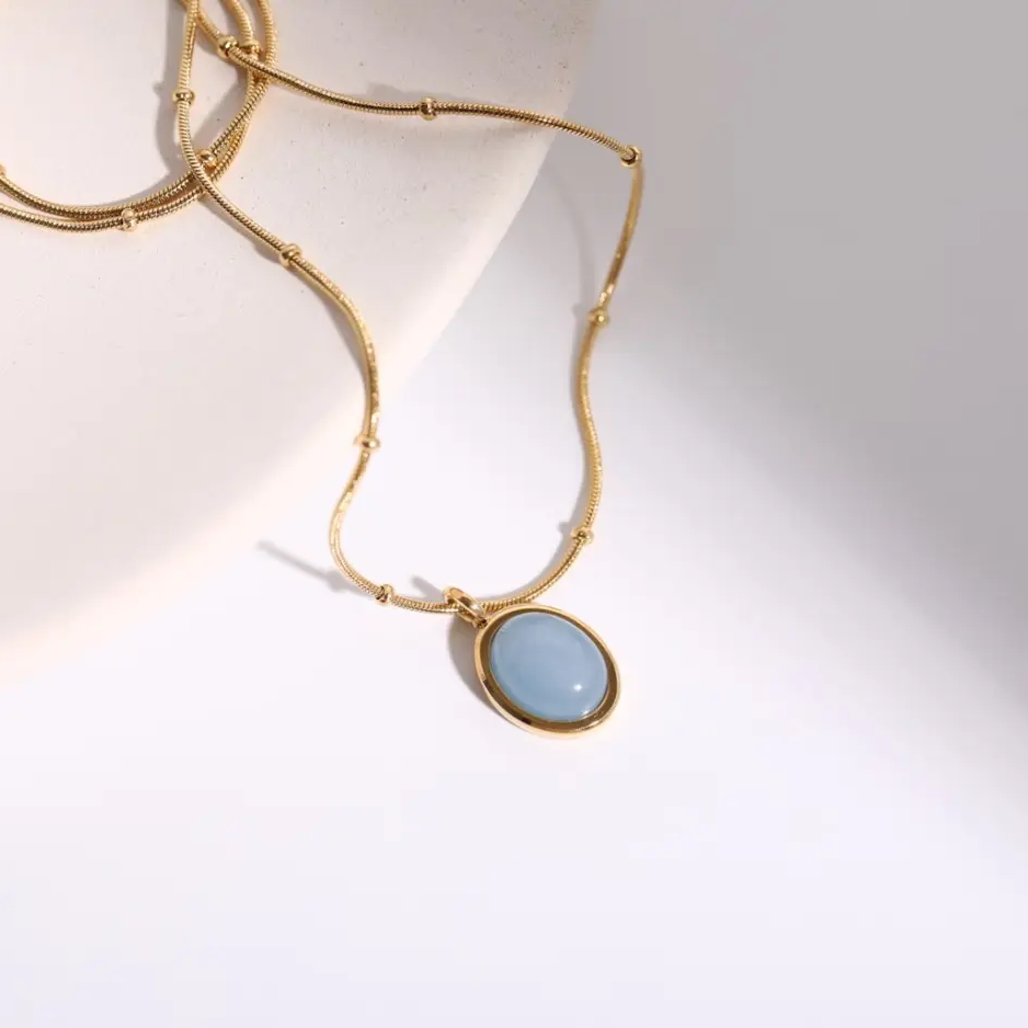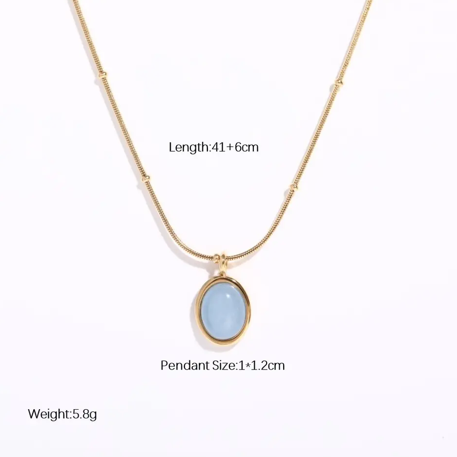 Material: Stainless Steel with18K gold plating neck chain & natural stone pendant.