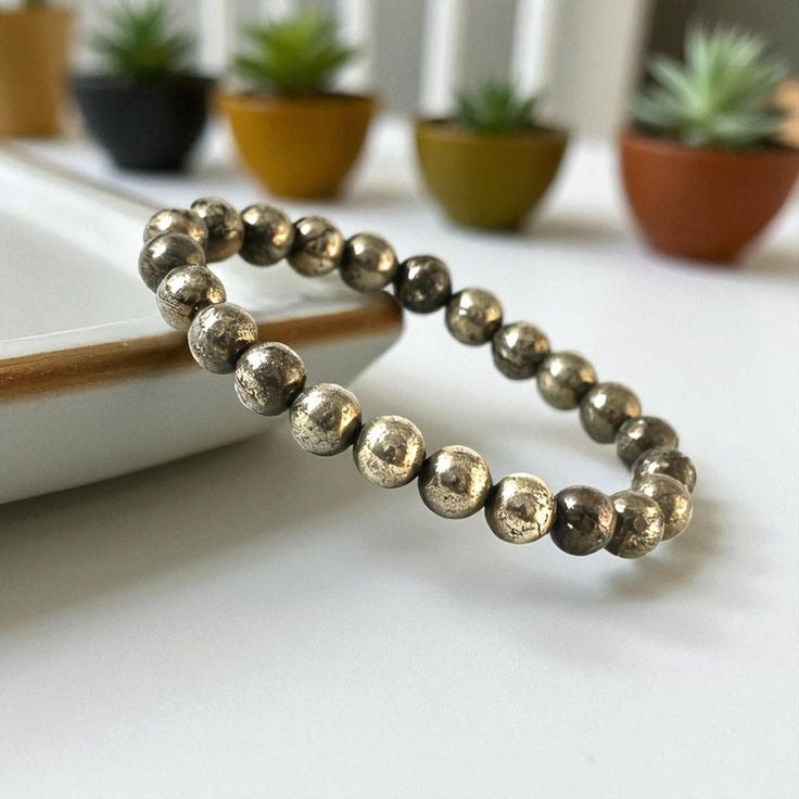 Pyrite Round 8 mm Bead Bracelet - Confidence & Wealth