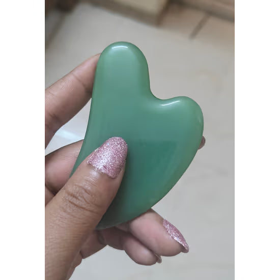 "🍀💚This green jade gua sha is now part of my daily wind-down routine. The natural stone stays cool even without refrigerating it, and I love how it instantly relaxes my jaw and temples. My skin looks visibly calmer and tighter — and I’ve had fewer breakouts since I started using it!🙏"