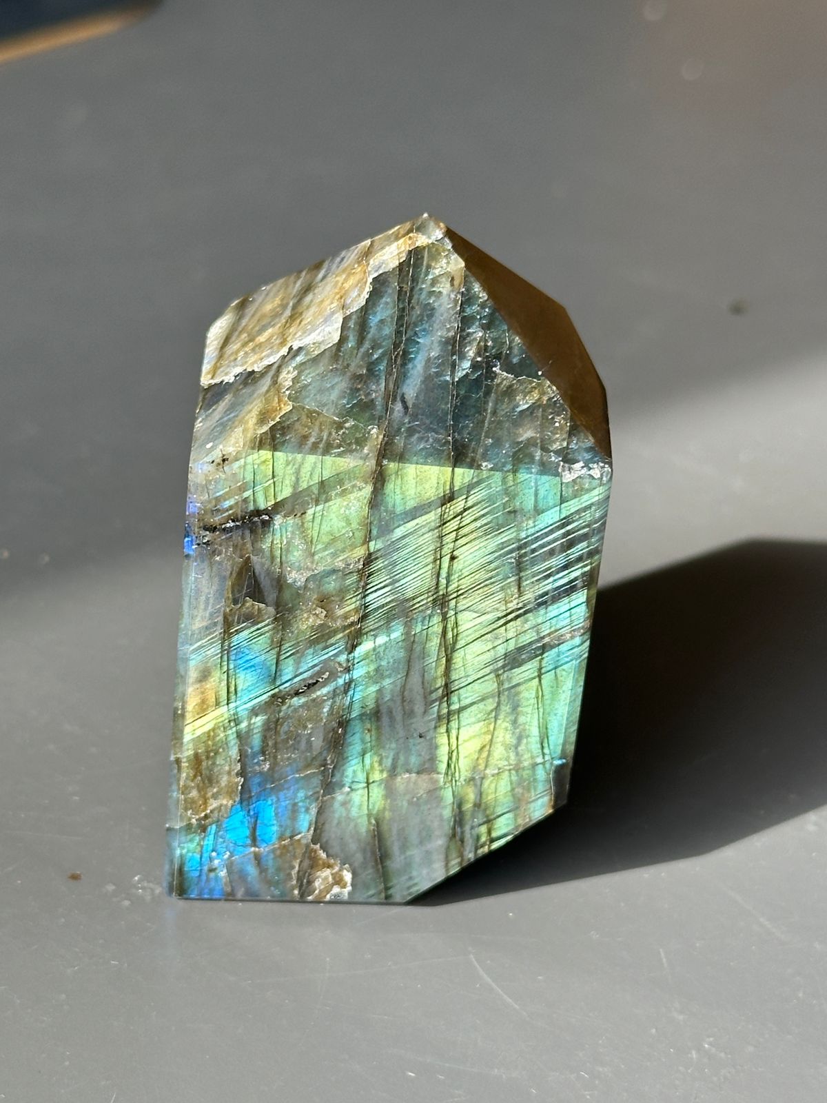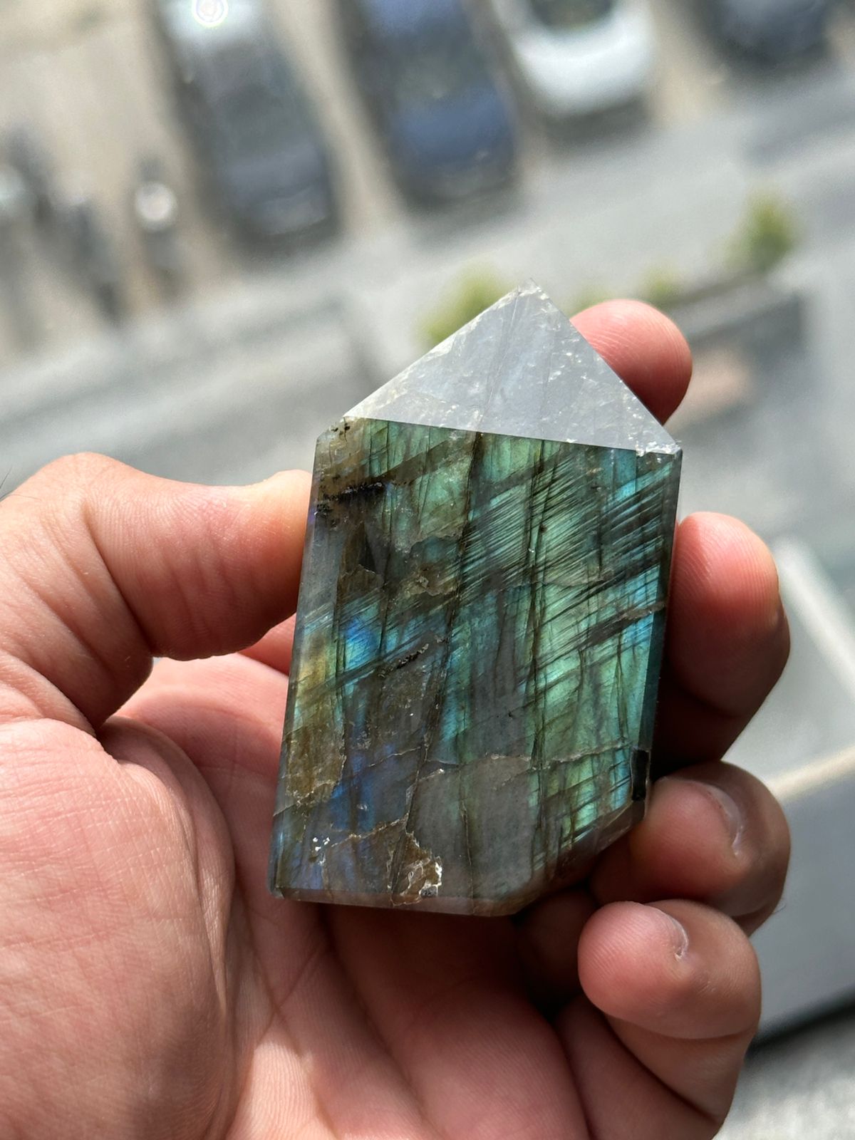 "The flash on this labradorite is insane — blues, greens, even hints of gold 😍✨ Every time the light hits it, it feels like magic. It’s now the centerpiece of my altar 💫🕯️"