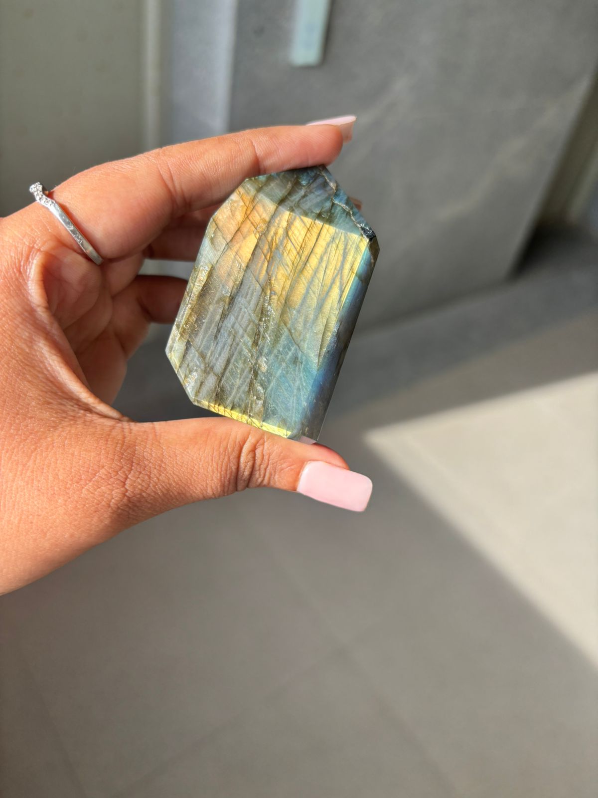 Stone: Natural Labradorite – Hand-polished Freeform with High Flash