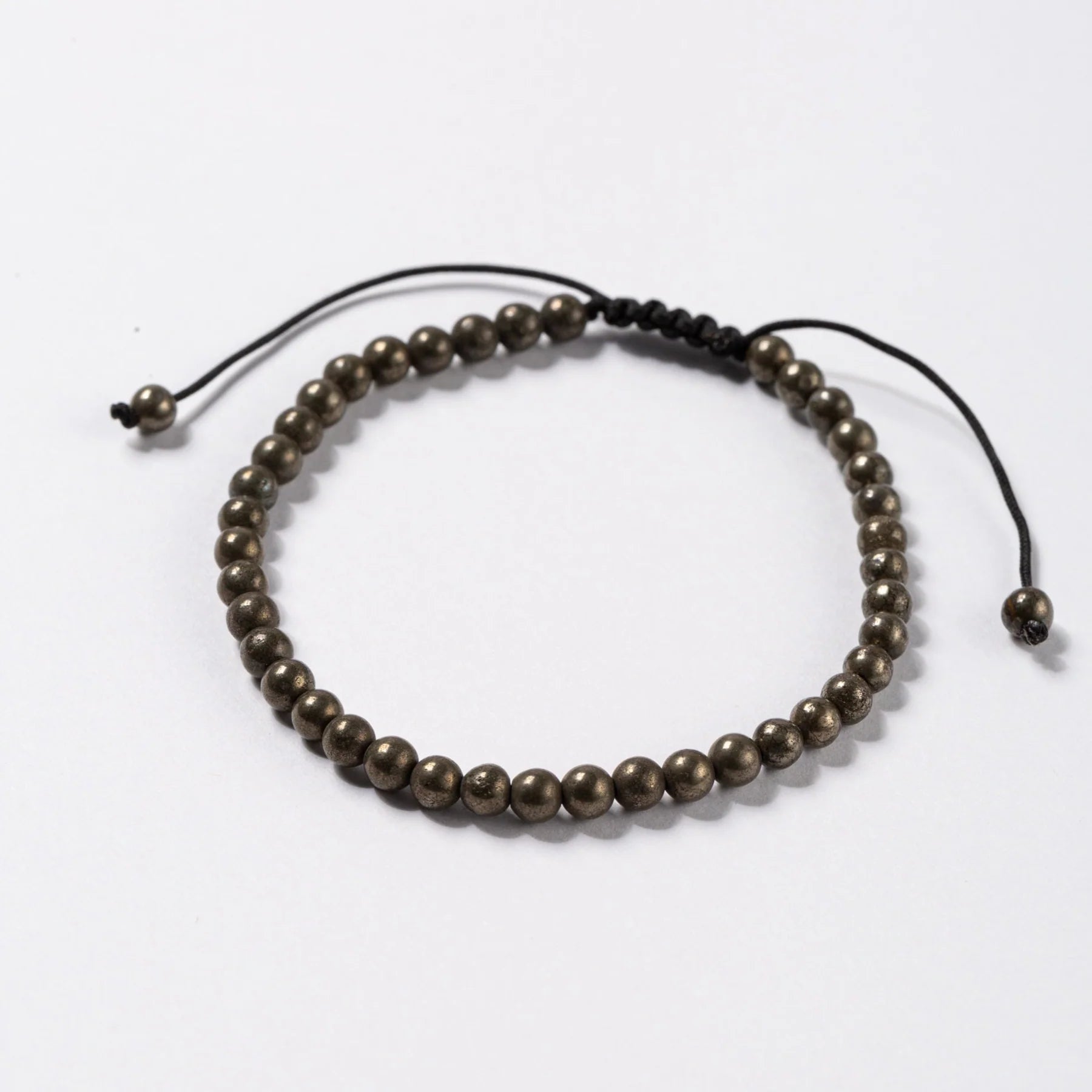 Each bracelet is carefully crafted with authentic 4mm Pyrite beads, strung on an adjustable thread for comfort and durability.
