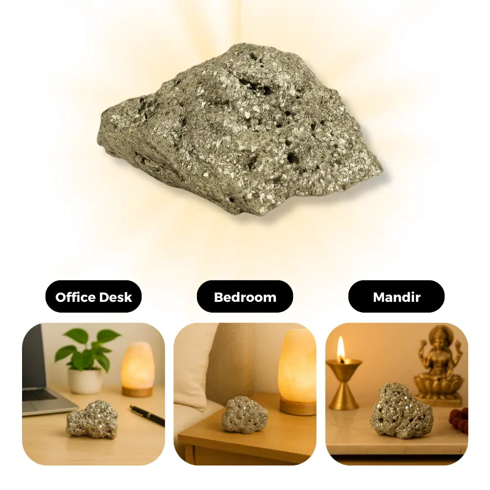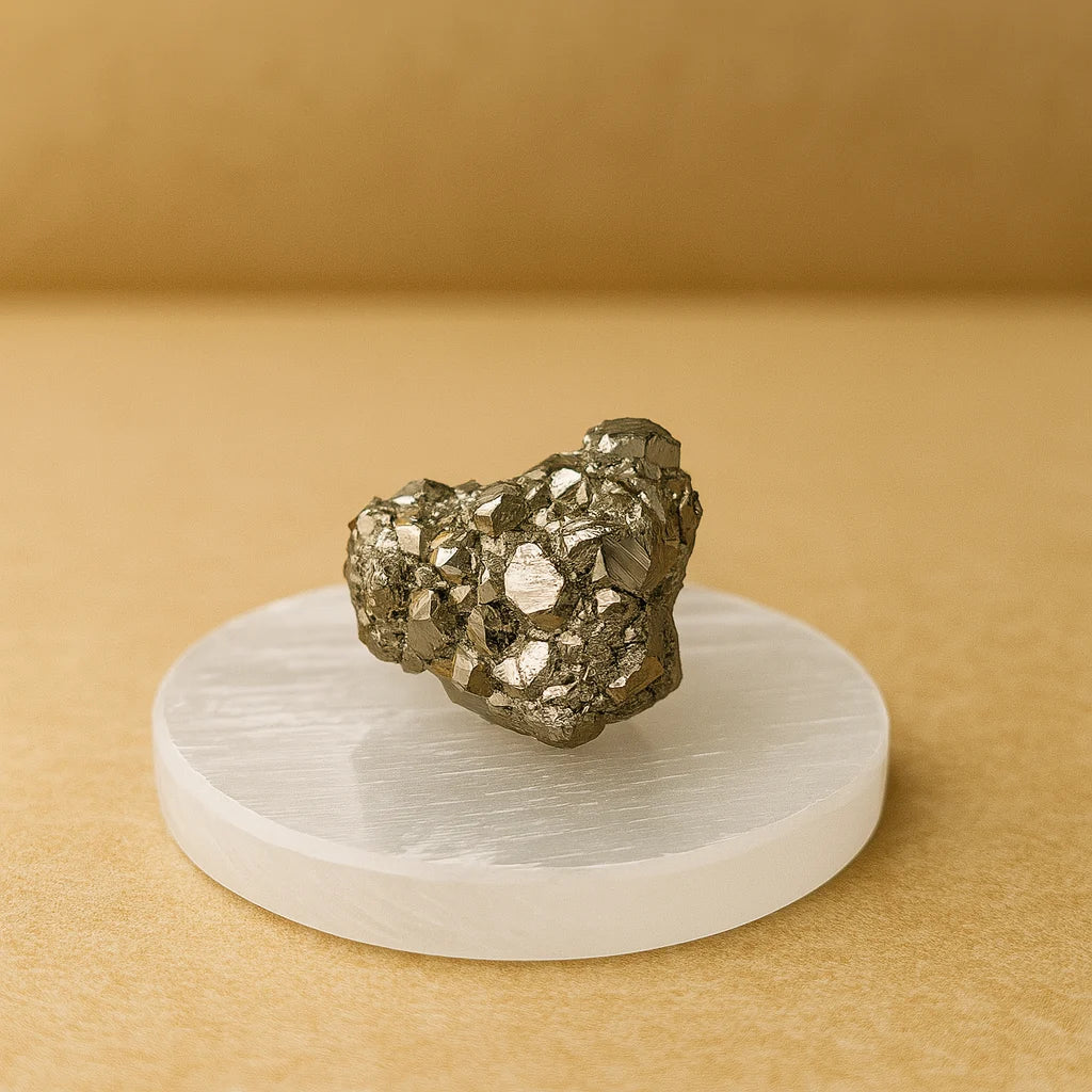 Pyrite, the “Stone of Wealth,” anchors your space with bold, grounded energy that attracts prosperity, fuels confidence, and protects your aura.