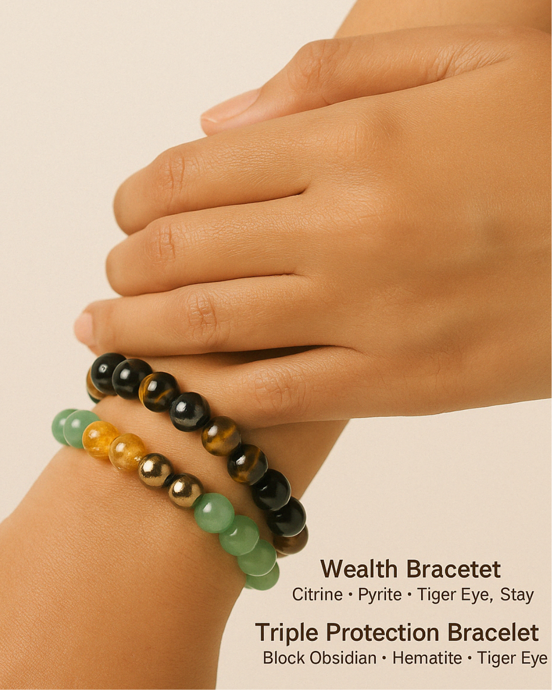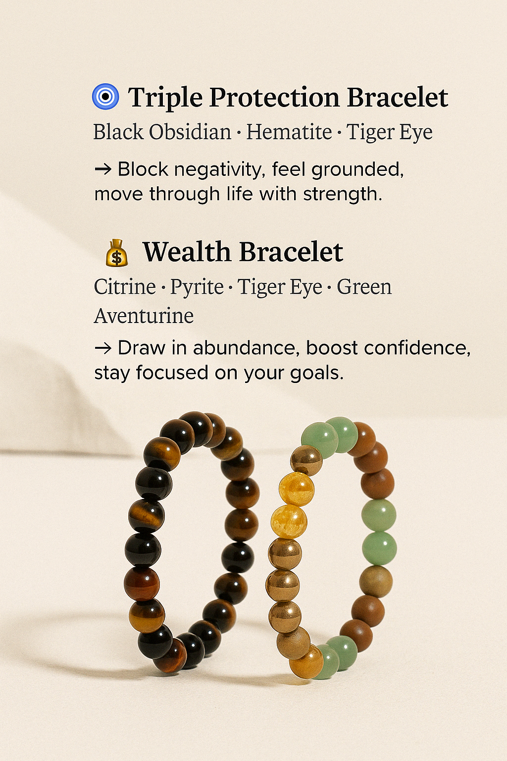 Wear this set daily to stay energetically protected and aligned with prosperity — so you can grow, create, and attract without interference.